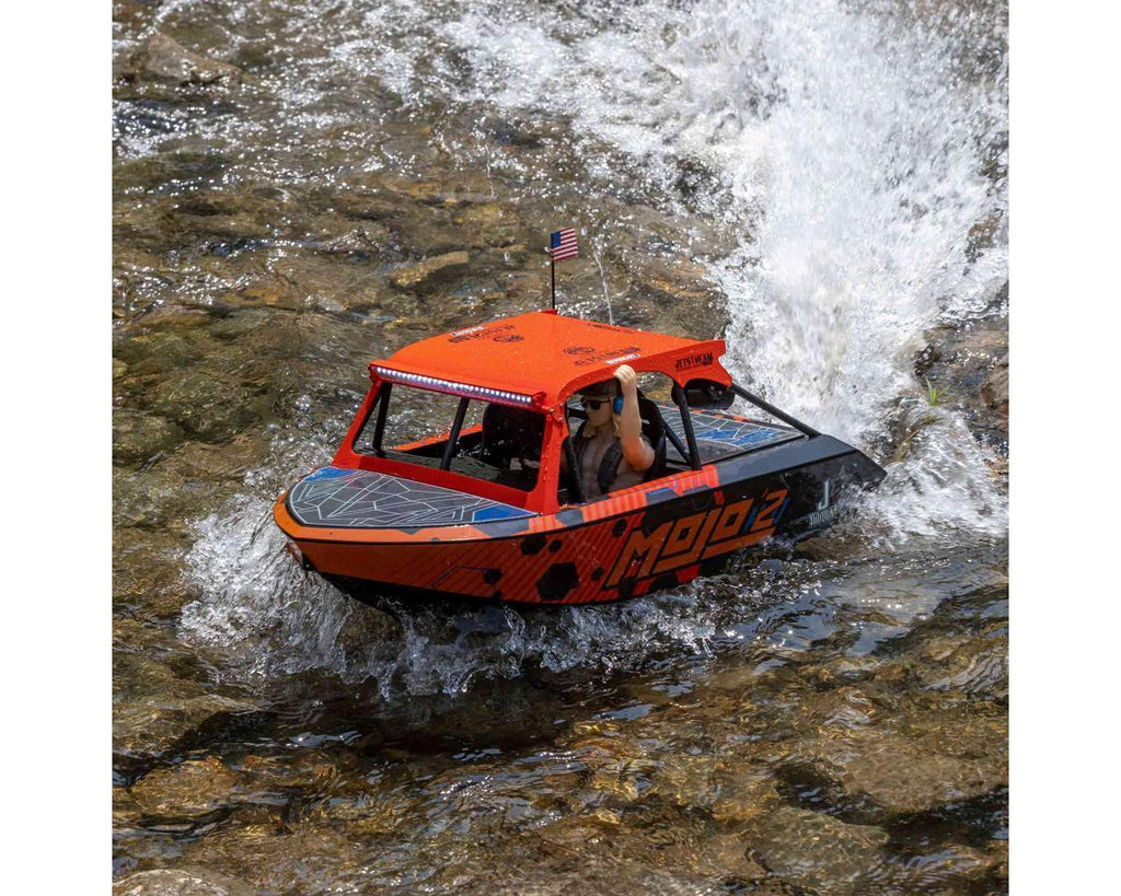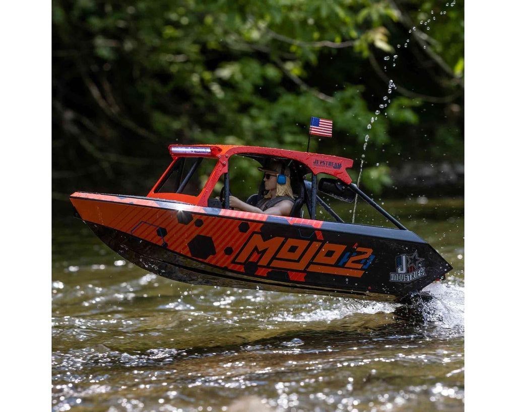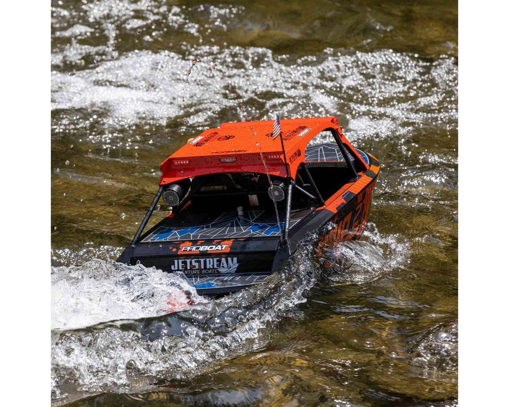 The Pro Boat 1/6 scale Jetstream RTR is a groundbreaking RC jet boat that mirrors the excitement of its full-size counterparts. Embodying the spirit of boundless adventure, just like real jet boating, this model empowers you to explore without limits and revel in the exhilaration of conquering every challenge. Pioneering the realm of RC boat bashing, the Jetstream is engineered for unforgiving conditions. It craves the tumultuous waters, whether they're a mere two inches or a vast two hundred feet deep. From turbulent whitewater to meandering streams, and even daring jumps, this is your passport to limitless thrills. Experience the ultimate in RC boating, and seize the unrivaled excitement of the Jetstream, the unrivaled titan of the RC boat realm.