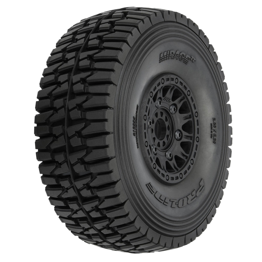 This is a pair of Mirage TT Belted Tires. Pro-Line is proud to announce a tire and wheel combo for your large-scale Desert Truck! The Mirage TT is inspired by full-size trophy truck tires to create a super-scale look while also giving your rig the ultimate performance upgrade with Belted tire technology! The Mirage TT tire is BELTED to handle extreme power and high speeds with ease. No tire ballooning here! These tires and new Raid 2.4/3.25" wheels have been developed from the ground up to be lightweight and durable enough to handle extreme punishment, giving you the best all-around bashing experience possible. Our legendary M2 compound provides all the grip you need no matter what track, road, or bash surface you're driving on. The Raid 2.4/3.25" Wheel features a removable hex for ultimate versatility. Not only do the included 17mm hexes give you the option between the MOJAVEâ 6S and Unlimited Desert Racer axles and offsets, but they also allow you to easily replace a damaged wheel hex without needing to replace your glued tires. The hefty 6x30 interlocking hex design is secured to the wheel by 6 M3 screws that are spaced 30mm across. Replacement Hexes are available separately (PRO639000), while our full line of 6x30 hexes will also fit whatever custom build or fitment you can dream up. This tire and wheel package is proudly manufactured and assembled at Pro-Line Headquarters in the USA! If you are ready to take your MOJAVEâ 6S and UDR to the next level of Performance and Durability, then you need Pro-Line's new Mirage TT Tires!