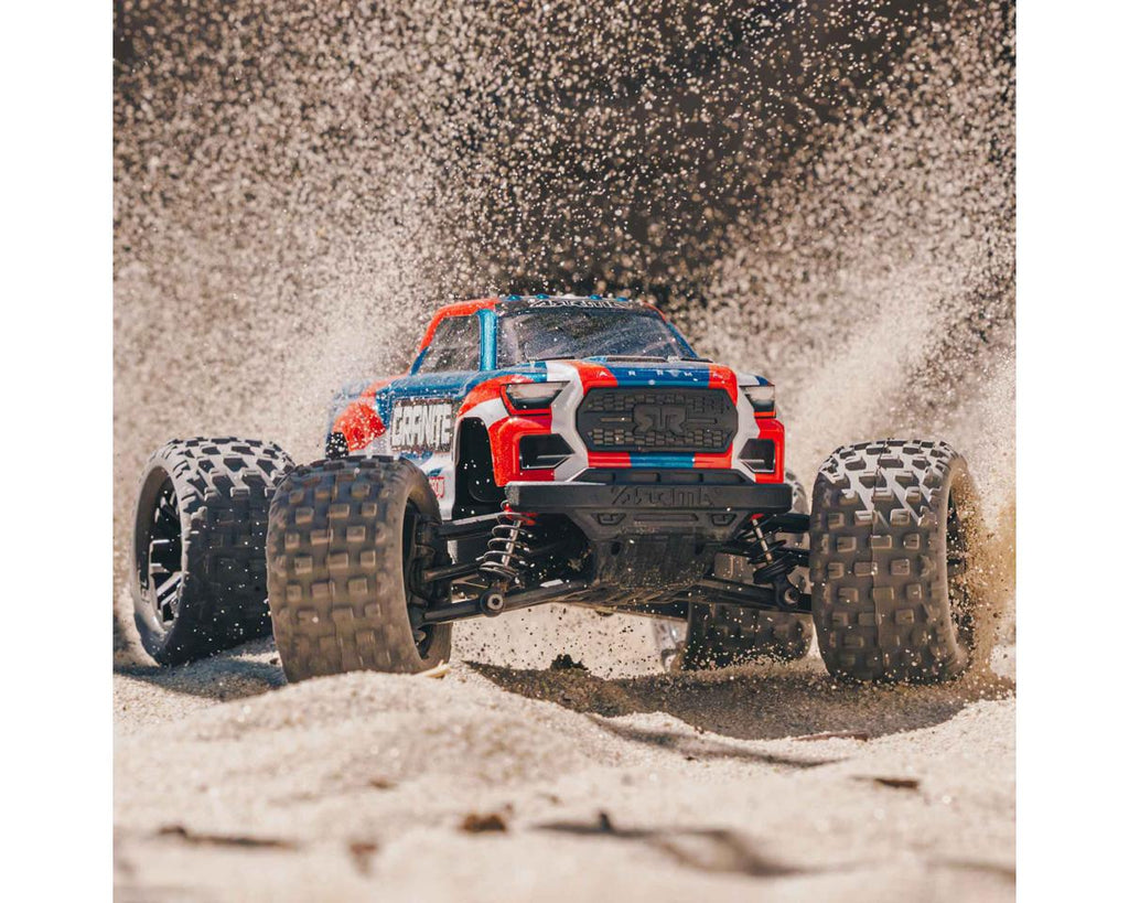 The GRANITE GROM 4X4 Monster Truck upholds the same rigorous engineering standards as its larger ARRMA RC counterparts. Additionally, it features a clipless body mount design that ensures the body remains securely attached while remaining effortlessly removable for drivers of all ages. In the realm of small-scale RC basher models, it stands out as a leader, offering a unique blend of convenience, power, strength, and exceptional handling capabilities that enable you to take your stunts to the next level.