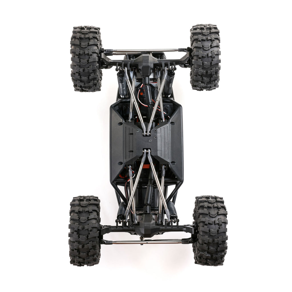 The Capra's 4-wheel steering (4WS) is such an advantage compared to 2-wheel steering (2WS) crawlers that it may almost feel like cheating! Using the third channel button of the included Spektrum DX3 transmitter, you can steer the rear axle full left, straight, and full right to position the tires perfectly for conquering obstacles. The user can program the DX3 to enable a 5-position rear steer switch for even for more tunability. In full-scale crawling competition, such subtle maneuvering is a must to avoid losing points from reversing or hitting a marker on the course. With the Capra, you experience more true rock crawling realism.
