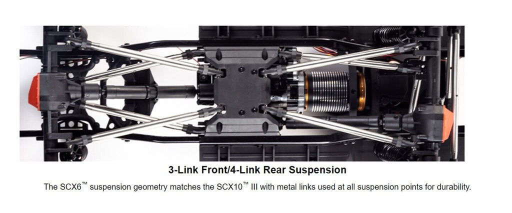 - 1/6 scale chassis design is based on the proven SCX10 III