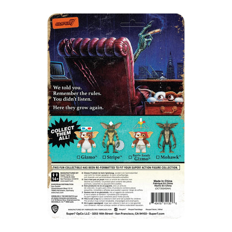 New 3.75â scale, articulated battle-ready Gizmo ReAction Figure, inspired by the 1990 film Gremlins 2: The New Batch.